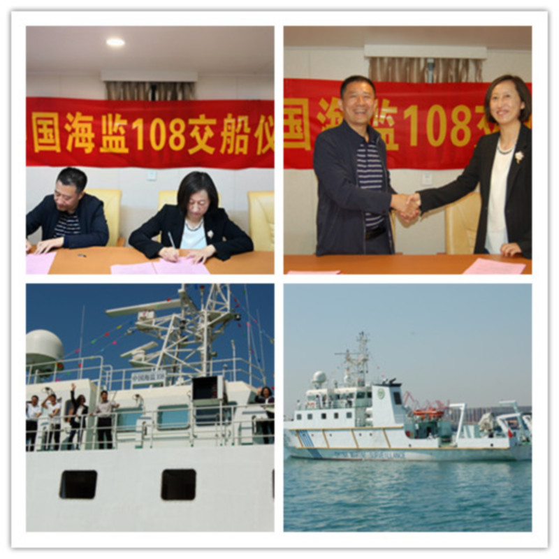 孟夏之日,天地始交,万物并秀,2019年5月22日,中心的500吨级近岸海洋环境监测船(船舷号:“中国海监108”)在青岛顺利完成交船仪式,正式交付。