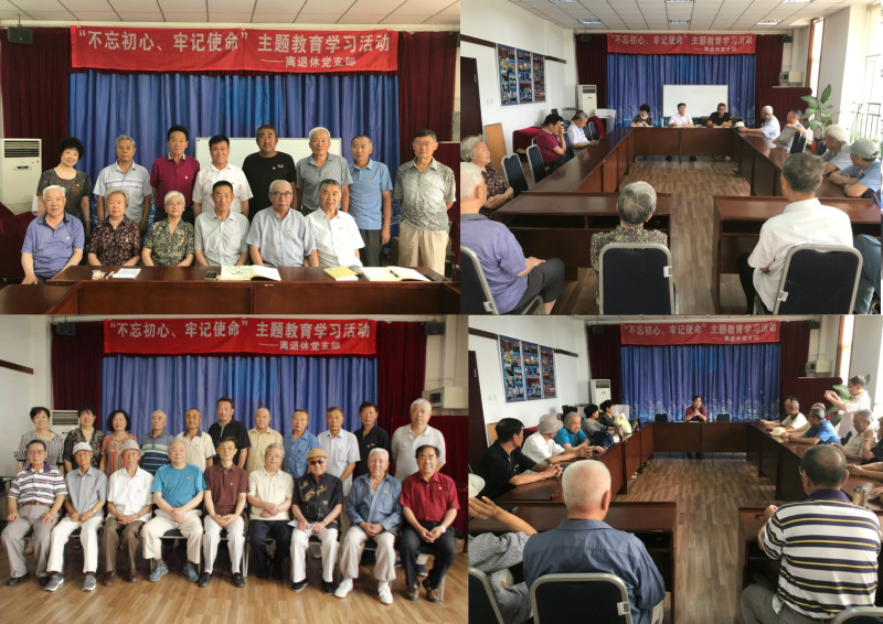 各位退休党员同志不畏酷暑,提前来到活动地点,并由支部委员为党员同志们佩戴党徽。四位退休党支部书记精心准备,认真组织各支部党员学习习近平总书记关于“不忘初心、牢记使命”重要论述选编以及《习近平新时代中国特色社会主义思想学习纲要》。党员同志们认真听讲,并在学习的基础上,回首过去经历,重温为人民谋幸福的初心和使命。此外,各退休党支部还主动拓展学习形式,丰富学习内容,结合自身实际组织开展了一系列主题教育活动。个别党支部还充分利用信息技术手段进行线上交流研讨,进一步加深思想教育和政治洗礼。各退休党支部委员还结合工作中存在的问题以及自身工作经验,就如何开展好党建工作进行了充分研讨。