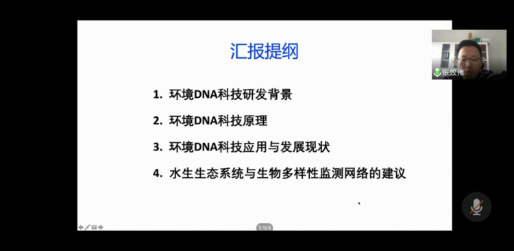 张效伟教授作了题为“环境DNA精准生物监测与生态健康评估”的报告,他围绕目前水生生态系统的现状、以生物多样性保护目标的生态毒性测试以及应用于环境生物监测的核心技术“eDNA”进行了重点介绍。