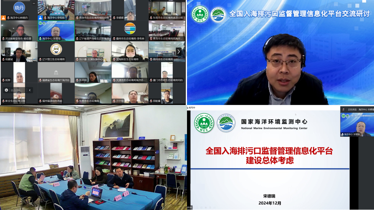 为落实《入海排污口监督管理办法(试行)》(以下简称“管理办法”)中关于全国入海排污口监督管理信息化平台(以下简称“监管平台”)建设要求,进一步提升各级生态环境管理部门应用能力,做好入海排污口排查整治、设置备案、规范性建设、日常监管等工作。日前,海洋中心以线上形式组织全国沿海生态环境部门及流域海域局300余人进行交流研讨,生态环境部海洋司有关负责同志参会并作指导发言。