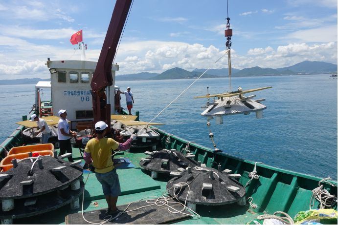 珊瑚礁是海域环境生态指标中的重要组成部分,为了增加三亚珊瑚礁保护区的珊瑚礁生物多样性,补充与完善其珊瑚礁基础生态系统,建立珊瑚礁生态保护与修复示范点,在掌握珊瑚种苗培育系统投放海区的珊瑚礁资源分布情况的基础上开展珊瑚培育工作并于7月初在投放海区投放5组(15个)人工生态礁基。珊瑚礁生态礁基投放完成后将对其进行定期的监测和监管,在珊瑚培育成活率达到80-90%的阶段性成果后在保护区全区域进行推广运用。