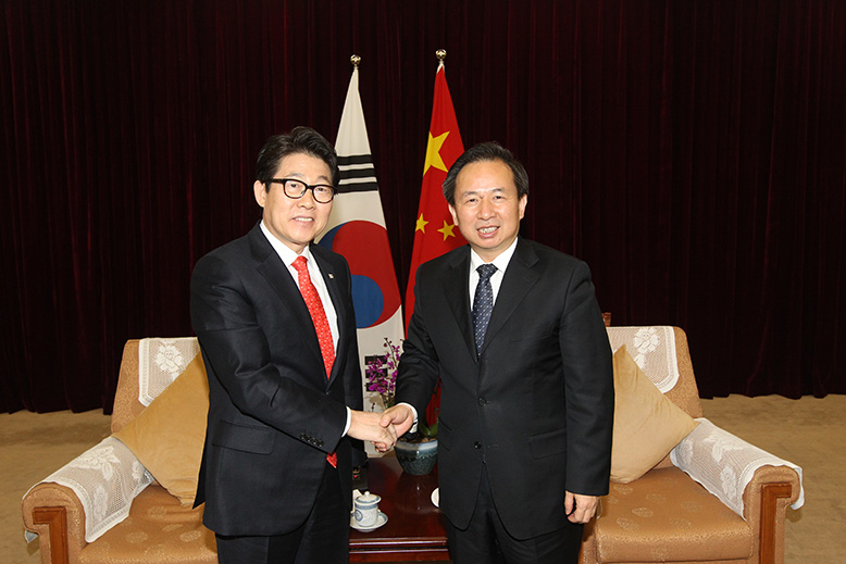 生态环境部部长李干杰2月26日在京会见了韩国环境部部长赵明来,双方就加强大气污染防治、推进中韩环境合作中心建设等方面合作进行了交流。