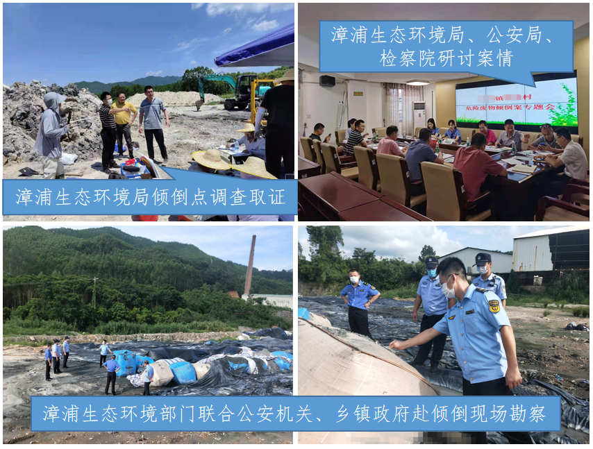 同时,漳浦县各部门密切沟通配合,保障案件侦办质量和防止次生环境污染。漳浦生态环境局负责线索甄别、证据采集,危险废物鉴定及应急处置;漳浦县公安局及时控制涉案人员,防止证据灭失、人员逃匿;漳浦县人民检察院引导侦查方向,提出侦查取证意见;案发地乡镇政府负责现场封控和看护。