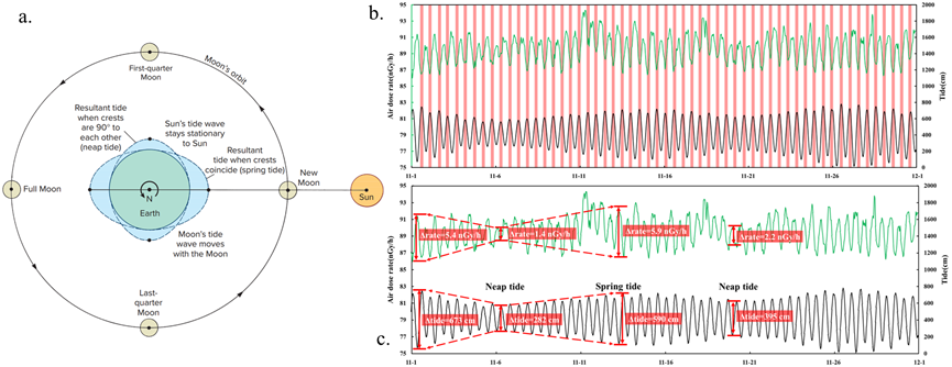集美大学极地与海洋研究院近日联合浙江省辐射环境监测站、福建省辐射环境监督站、广西辐射环境监督管理站等部门在《Nuclear Engineering and Technology》核科技领域国际权威期刊发表的研究成果揭示了一个被忽视的科学真相:大家用手持仪器测量到的是周围环境的核辐射参数——γ剂量率,并不单是海水的γ剂量率,而且海边的γ剂量率会随潮汐涨落呈现显著的自然周期性变化,也就是涨潮时核辐射参数——γ剂量率会降低,落潮时γ剂量率升高。