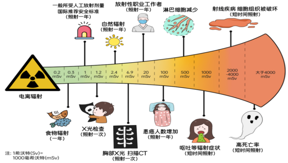集美大学极地与海洋研究院林武辉教授也表示,应该理性看待手持仪器显示的数值,更需要科学解读。他指出,在我们周边环境中,一直存在着一定量的天然放射性核素,并参与食物链循环中,应与人工放射性核素进行区分,比如一根香蕉中含有10Bq(贝克勒尔)天然放射性同位素钾-40,也就是说吃1根香蕉,人体受到的辐射剂量约为 0.1μSv(微希沃特)。一般实验认为,至少超过100mSv(毫希沃特)以上,等效于100万根香蕉的钾-40剂量,才能观察到对人的显著伤害。