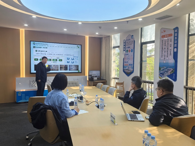 调研中,阳江核电详细介绍了海洋辐射环境监测工作的开展现状,系统梳理了在当前复杂海域环境下,监测频次优化、数据精准分析以及极端天气应对等方面面临的困难与问题。海洋中心结合前期工作实践案例,分享了冷源应急响应的成熟经验,并针对大围堰内源发性冷源风险的突出特征、主要成因及解决方案进行了深入分析,介绍了声呐响应、环境DNA探针等新兴监测技术研究成果,为充分发挥浮标在冷源风险监测中的作用,深化核电冷源安全保障体系,提供了数智化新路径。